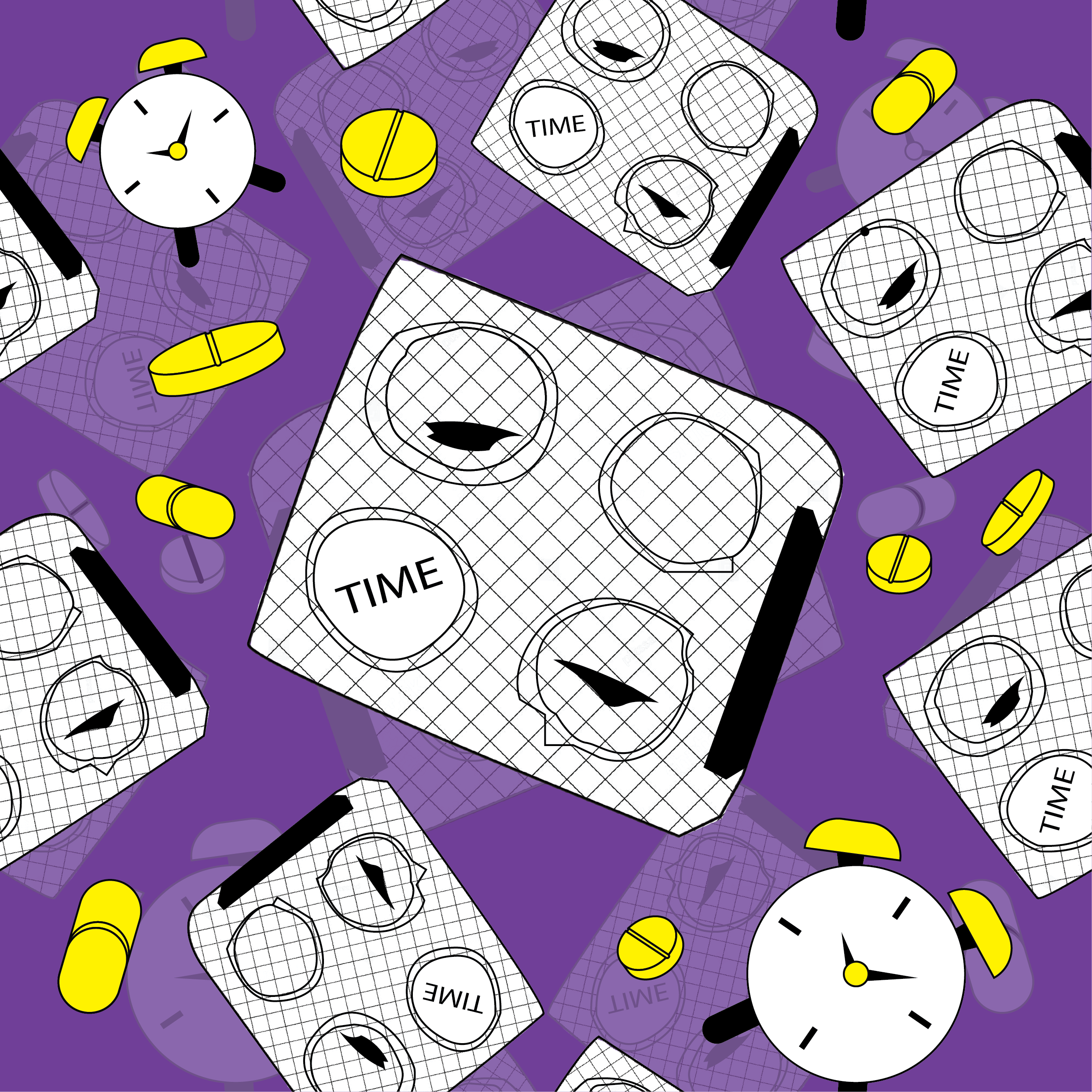 In this pattern design project, I interpreted the phrase “Running Out of Time” as a visual narrative using wallpaper tiles to explore urgency, repetition, and the fleeting nature of opportunity. By breaking down the concepts of ‘running’ and ‘time,’ I used exaggeration, symbolic repetition, and fragmented motion to express the feeling of something slipping away.